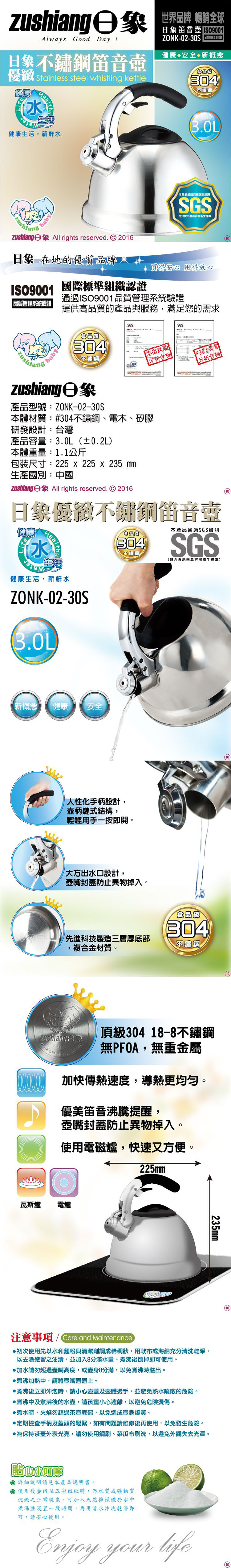 【限時商品購買折扣】Zushiang 日象 ZONK-02-30S 3.0L 優緻 不鏽鋼 笛音壺